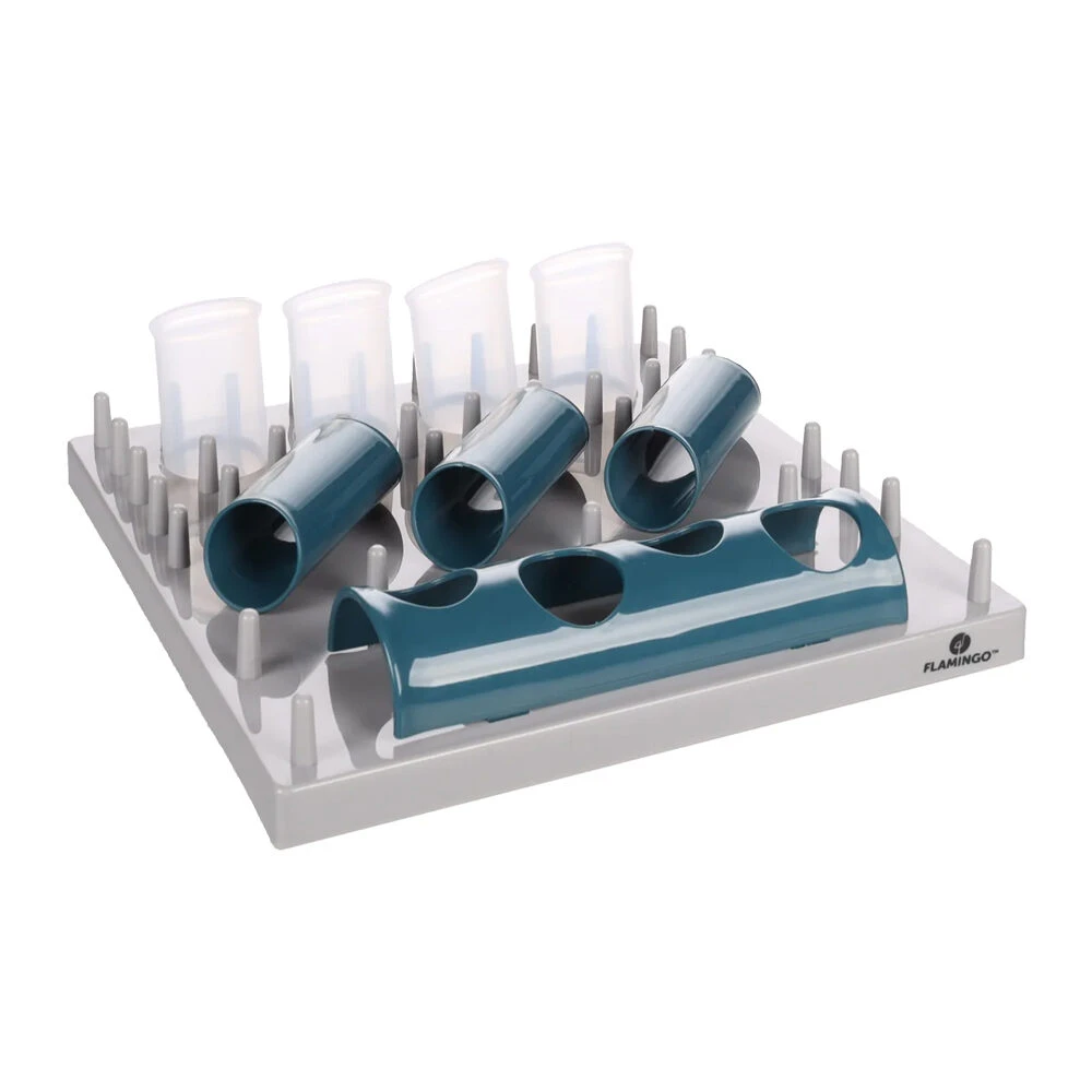 Met deze interactieve voerpuzzel van Flamingo zal uw kat gestimuleerd worden om langzamer over het eten te doen. De snoepjespuzzel is een zogeheten slow feeder, waardoor uw kat extra wordt uitgedaagd om alle brokjes of snoepjes te pakken te krijgen. De voerpuzzel bestaat uit verschillende compartimenten en verborgen vakjes waarin u voer of traktaties kunt verbergen.